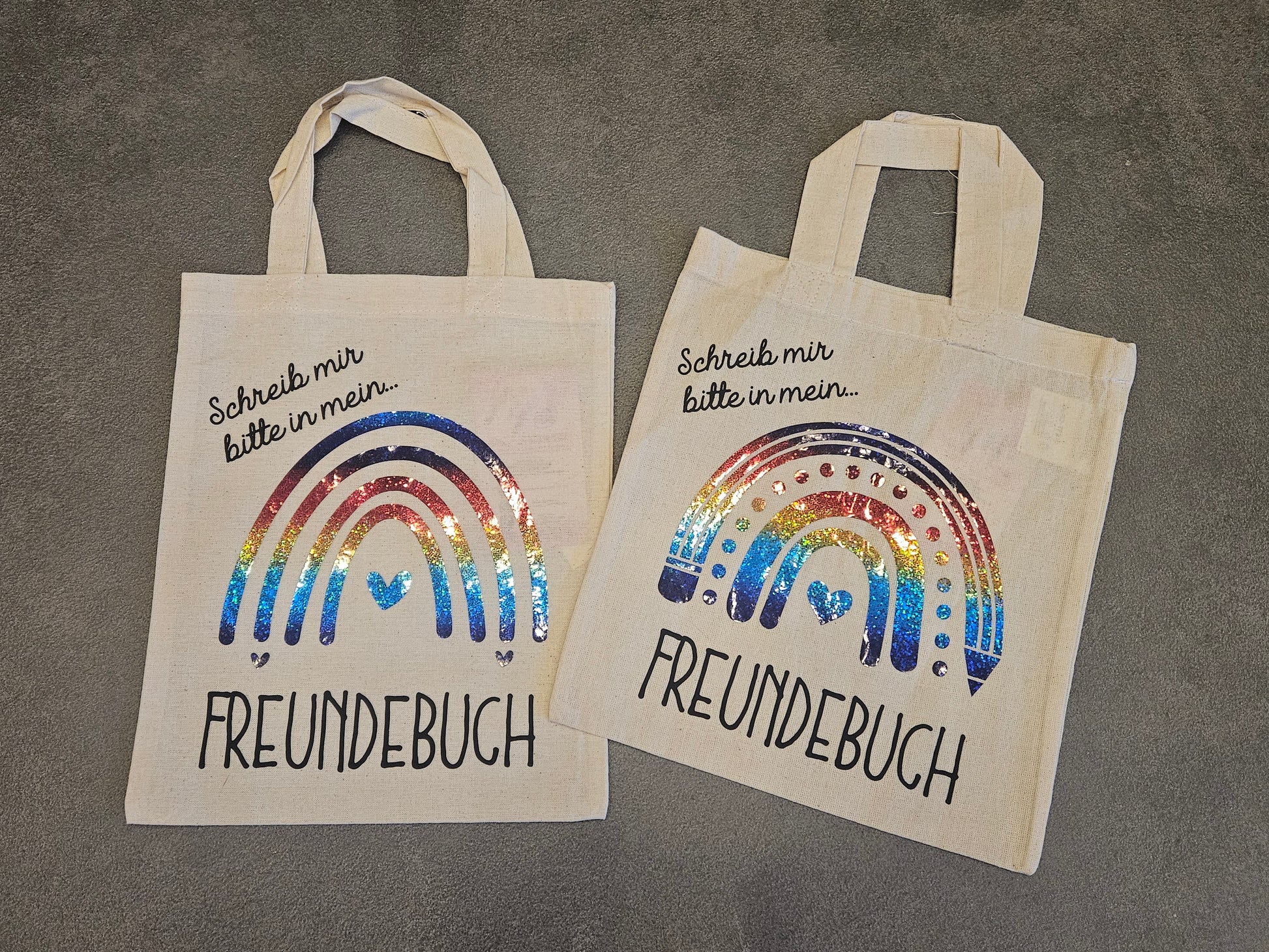5€ Grundpreis ist für Tasche mit Name und Sternen oder Herzen mit einfacher Folie.